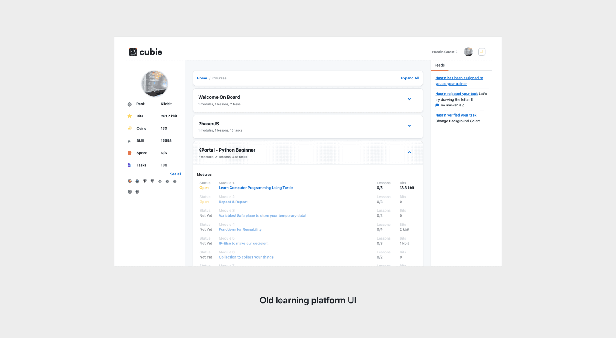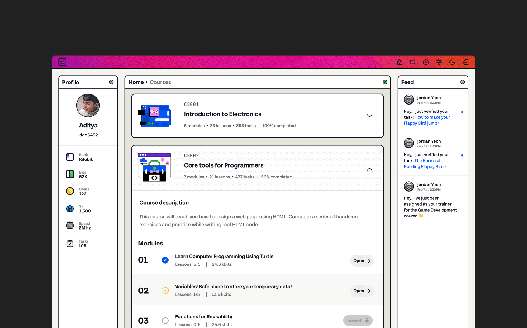 Kidocode's updated learning platform, is constantly evolving. We understood that the overall direction of the platform was to be an OS-like interface that would enable students to learn, play, build and interact with one another.