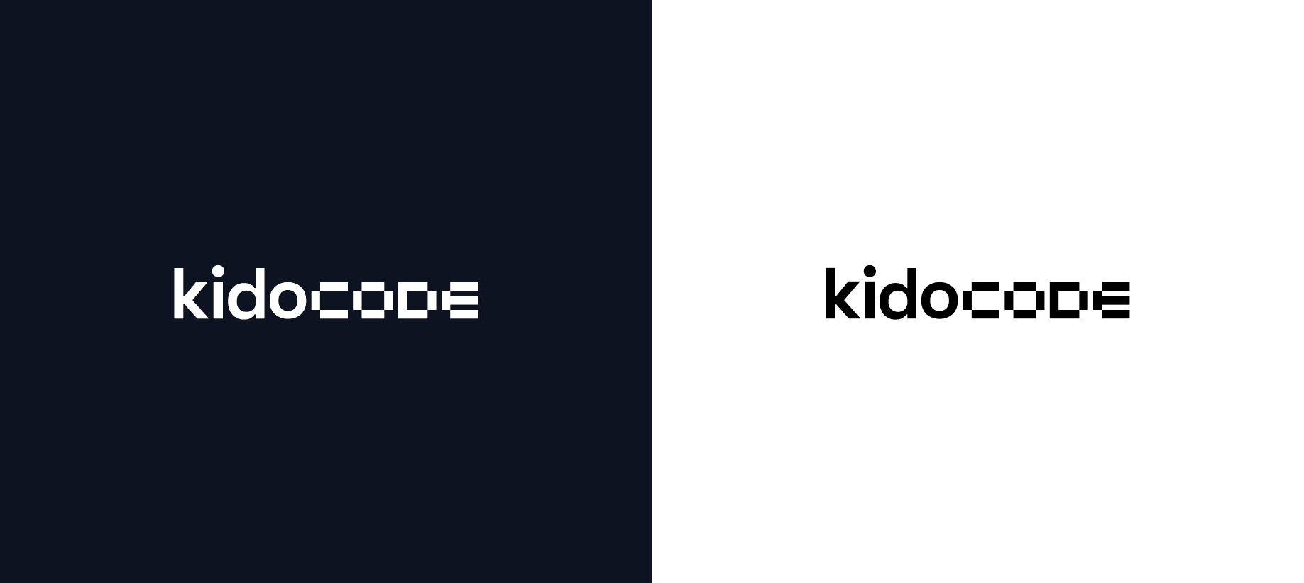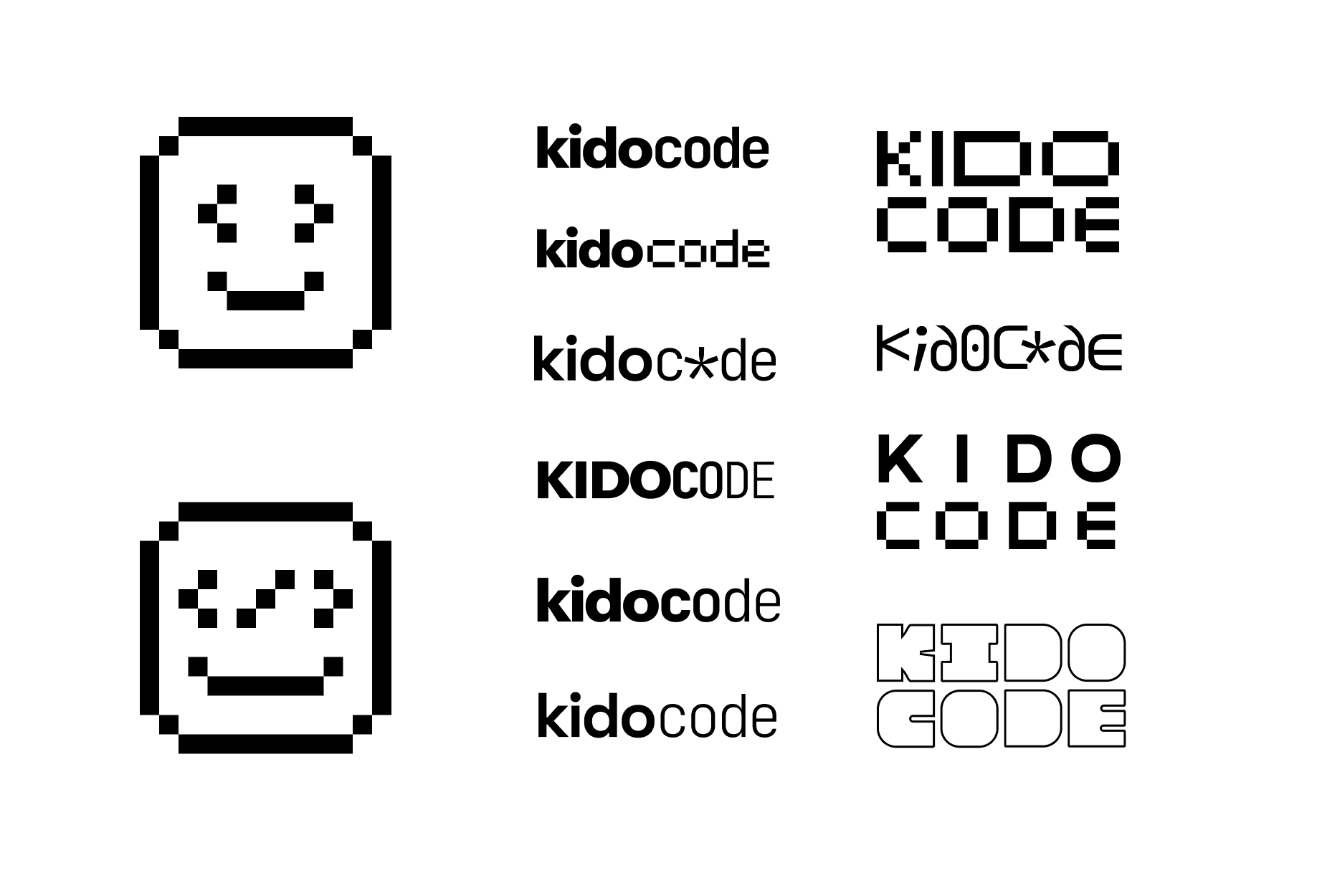 The wordmark complements the brandmark by utilizing a modern approachable geometric sans-serif for the “kido” characters, and in contrast, utilizes a custom pixel type style for the “code” characters. Once again, this is to show the merging of the human personality with computers.