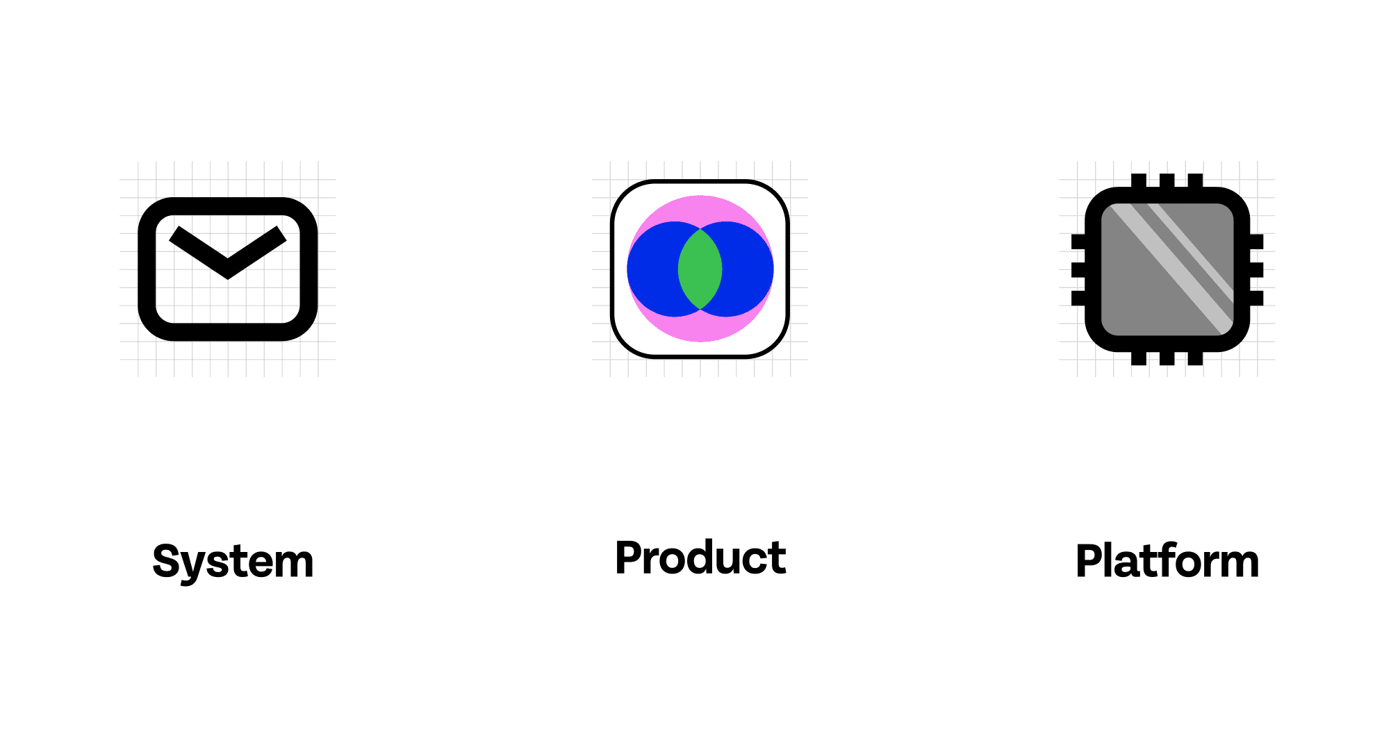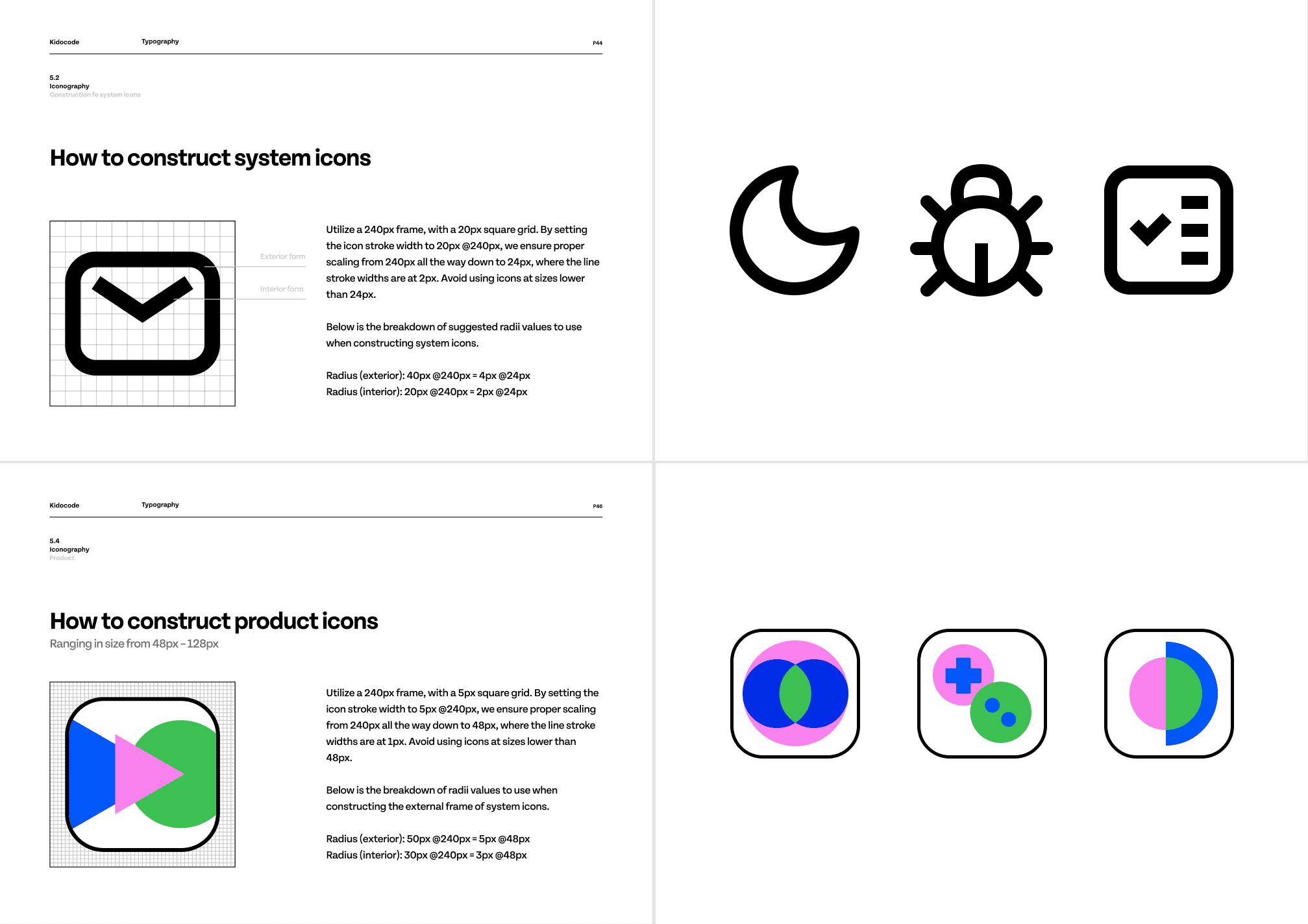 Being a colorful company, we needed separate guidelines for system icons vs. product icons vs. platform-specific icons to ensure that there were no misunderstandings in the methods used to craft icons with very different traits.