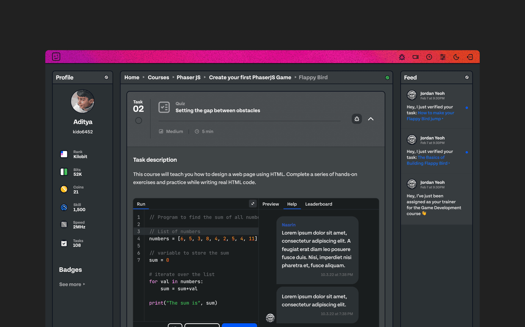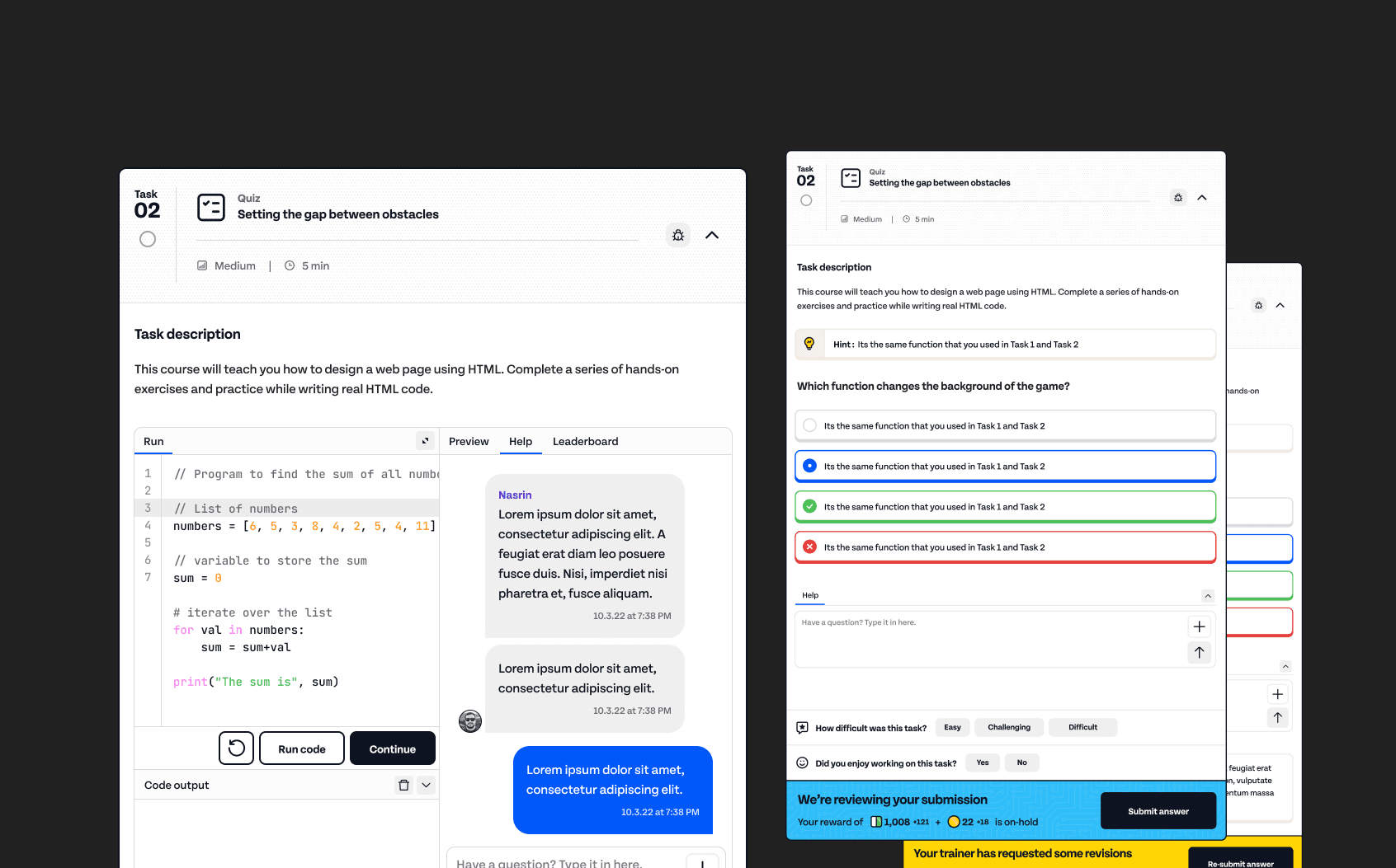 Image: Learning Platform: Clearer task statuses, hints availability, and task specific chat