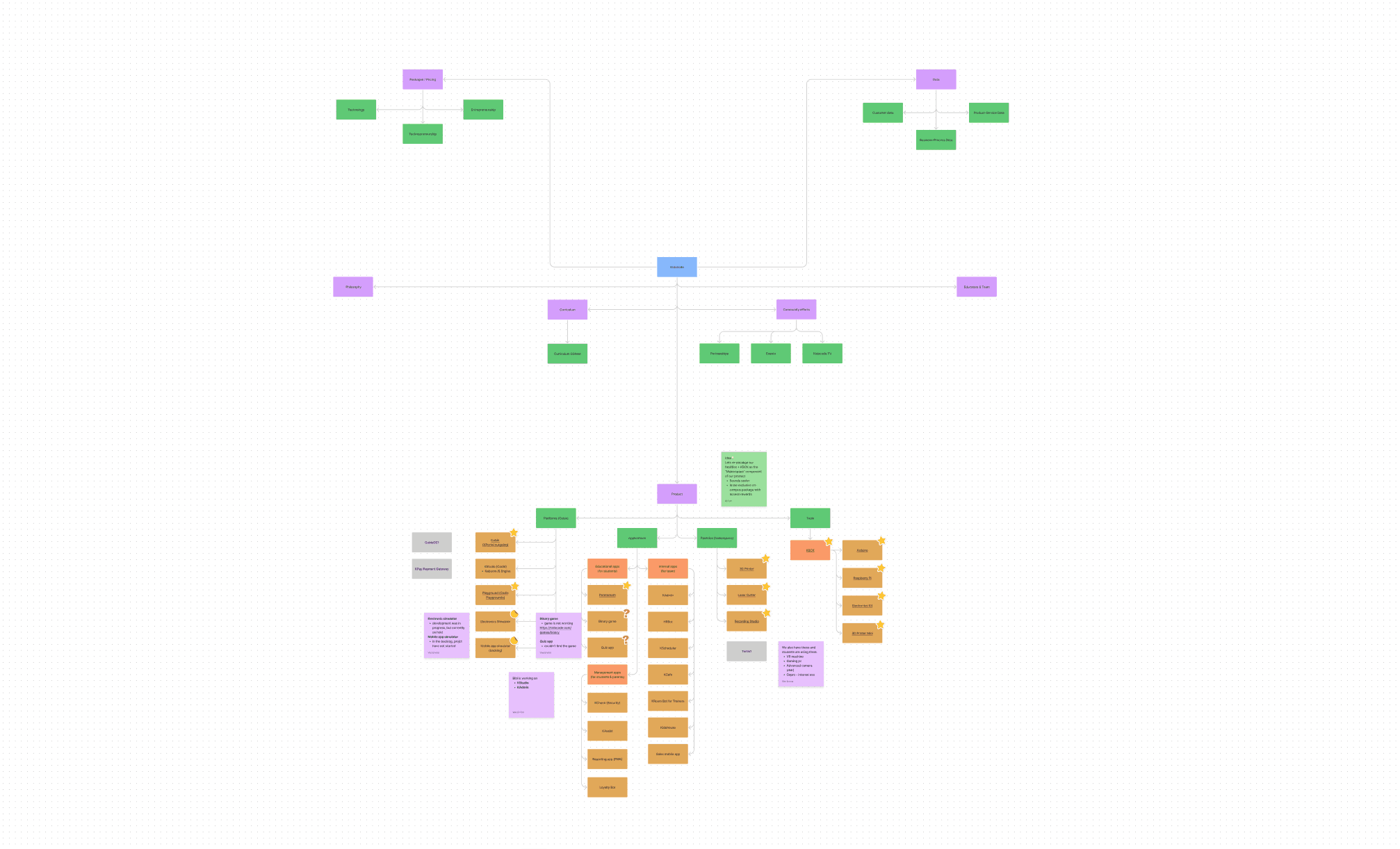 A key final result from the previously held meetings was to put it all together in a visually meaningful diagram called the "Ecosystem Map" (shown below) that served as a single source of truth for everyone within the team. The diagram made it simple to identify and organize our entire company's efforts to see which projects fit into the larger picture. It's one of the few documents that our entire team still looks at and uses consistently to this day.