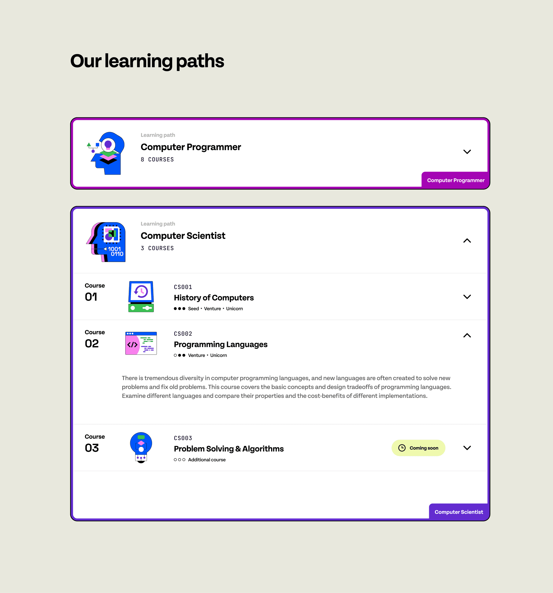 With our website done, we set out to apply our new visual identity across our learning platform. Here are some of the key areas we sought to improve, and how we affected our engagement metrics.